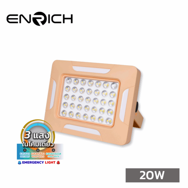 สปอร์ตไลท์โซล่าเซลล์ LED 20W ENRICH SPONGE สีชมพูพาสเทล ไฟสปอร์ตไลท์โซล่าเซลล์แบบพกพา ให้ความสว่างด้วยชิป LED SMD2835 จำนวน 35 เม็ด มี 3แสงภายในโคมเดียว แสงขาว Daylight 6500K แสงเหลือง Warm White 3000K และแสงขาวนวล Cool White 4000K ปรับระดับไฟได้ 5 สเตป ใช้งานได้หลายแบบทั้งแขวน มีแม่เหล็กในตัวแปะติดได้เลย และสามารถเป็นแบตสำรองในยามฉุกเฉิน เหมาะสำหรับกลางแจ้งหรือกรณีฉุกเฉิน และยังสามารถรองรับสายชาร์จ USB-A และ USB-C ชาร์จได้แบบ2in1 ทั้งไฟบ้านและโซล่าเซลล์ ชาร์จง่าย ใช้งานสะดวก แข็งแรง พร้อมสำหรับทุกการใช้งาน >>รายละเอียดสินค้าเพิ่มเติม<<
