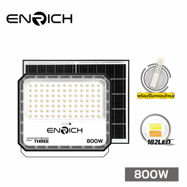 สปอร์ตไลท์โซล่าเซลล์ LED 800W ENRICH THREE 3 แสง