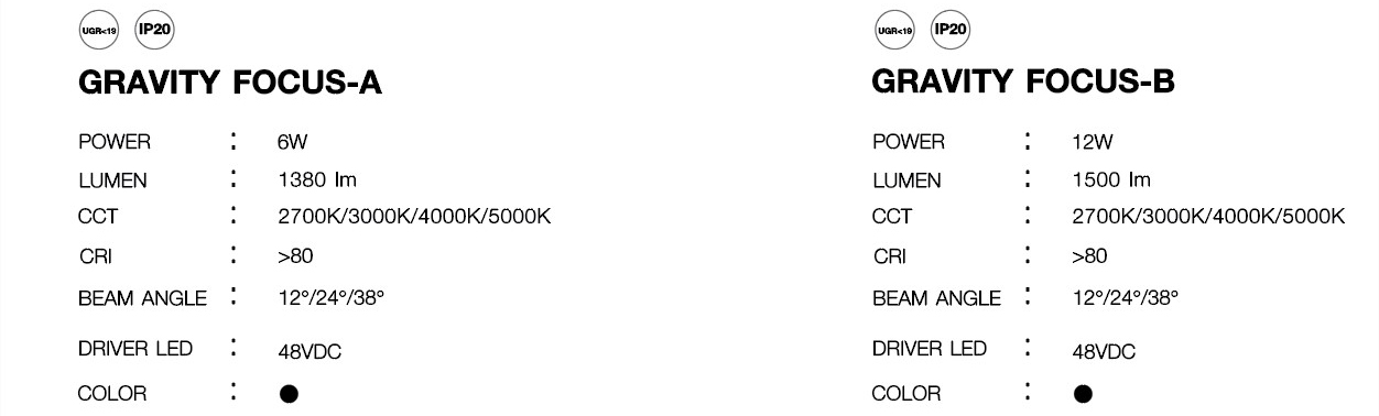 Power: LED COB 6W/12W 750LM/1500LM 48VDC