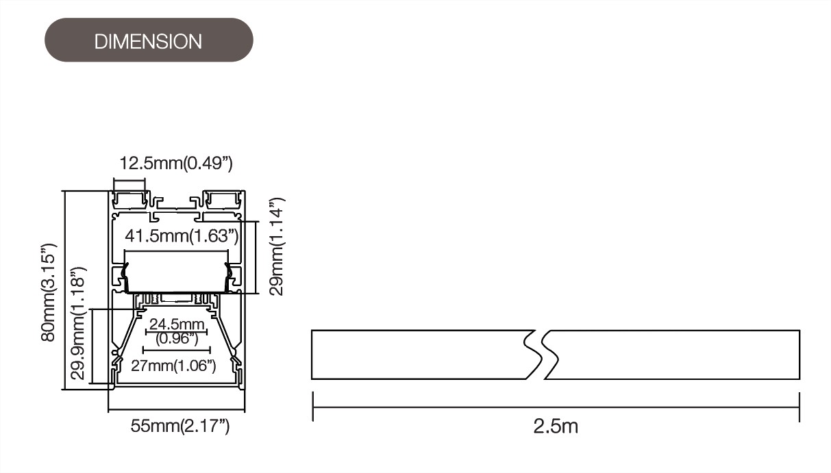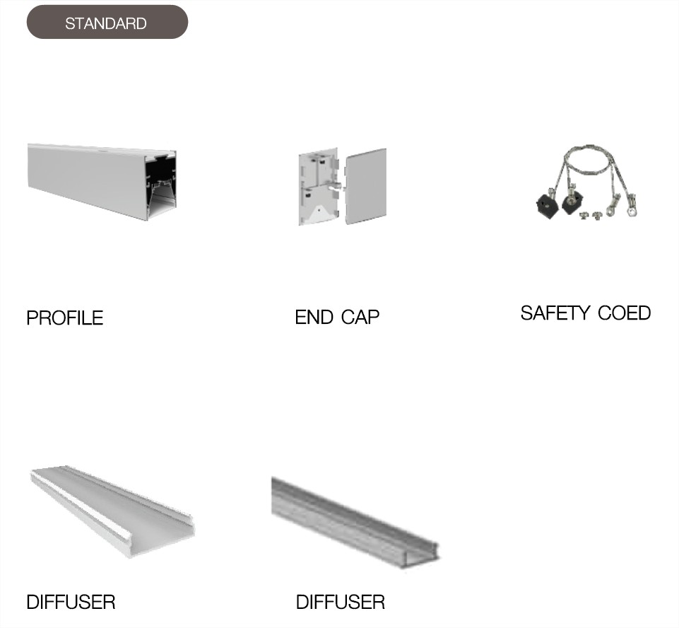LINEAR-LINO L5580D Product type: Aluminum Profile Material: Extruded Aluminum , Acrylic Dimension: 55x80x2500mm. Color: Aluminum
